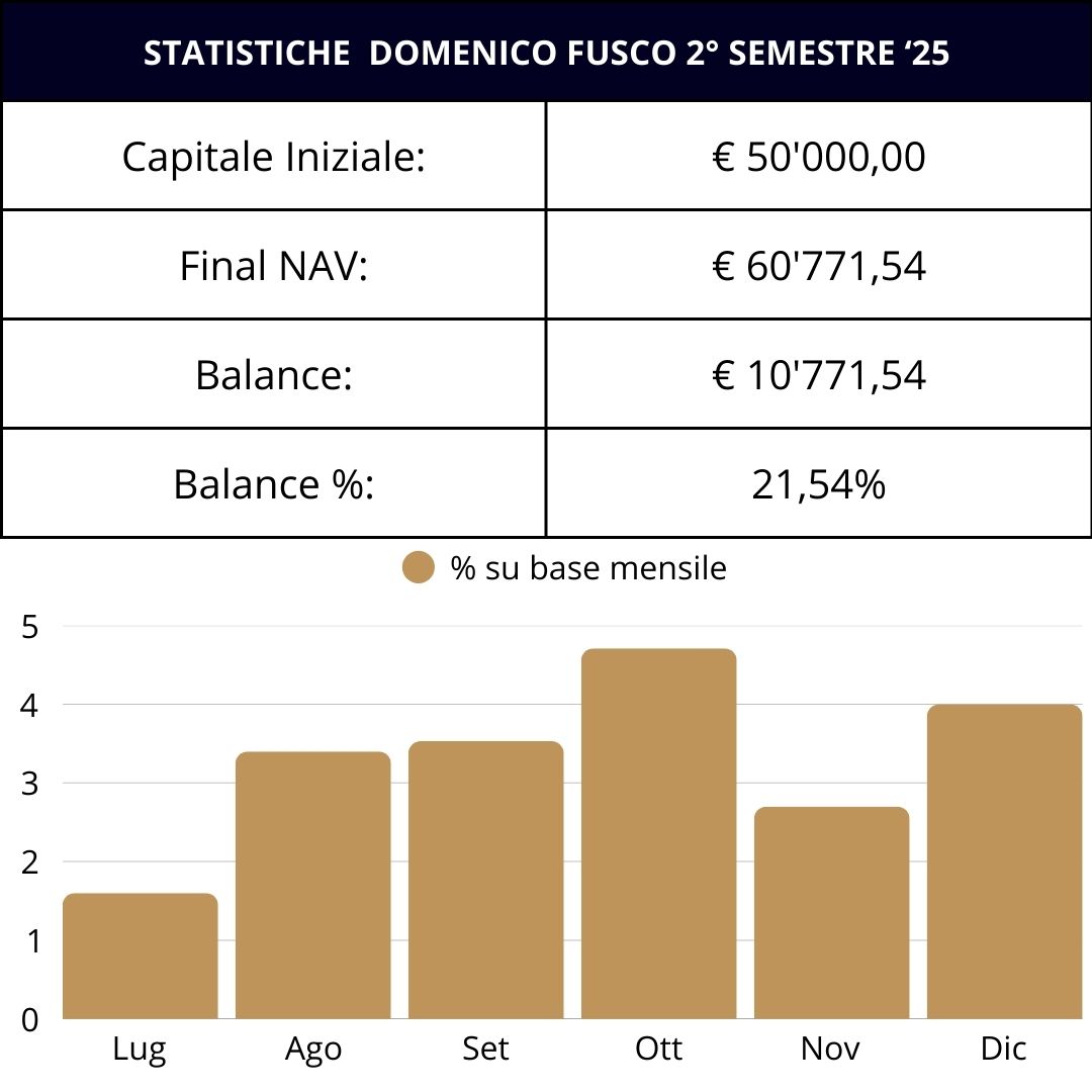 Portafoglio che opera prevalentemente direzionale su commodities, azioni, indici, valute e vix con una base di capitale di € 30'000.