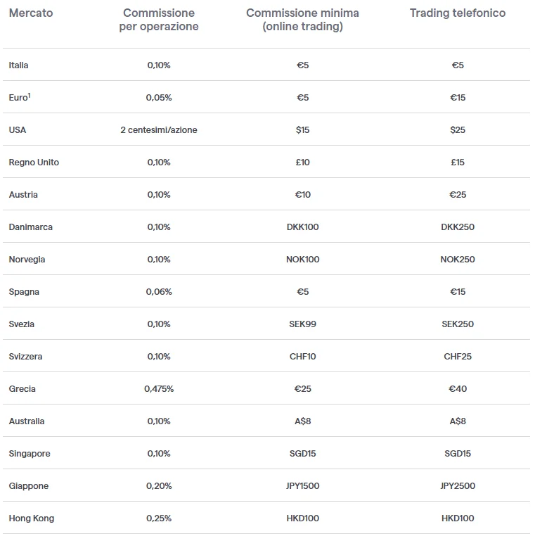 Le commissioni di IG vengono applicate solo sui CFD su azioni: la commissione è diversa a seconda del mercato di riferimento.